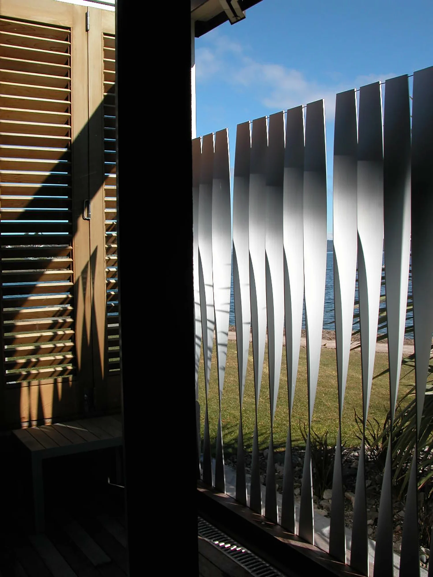 The form of the building employs the vernacular of the Kiwi boat shed and bach. The use of materials reiterates the interplay of exterior and interior spaces, creating an informal and ever changing feel to the experience.